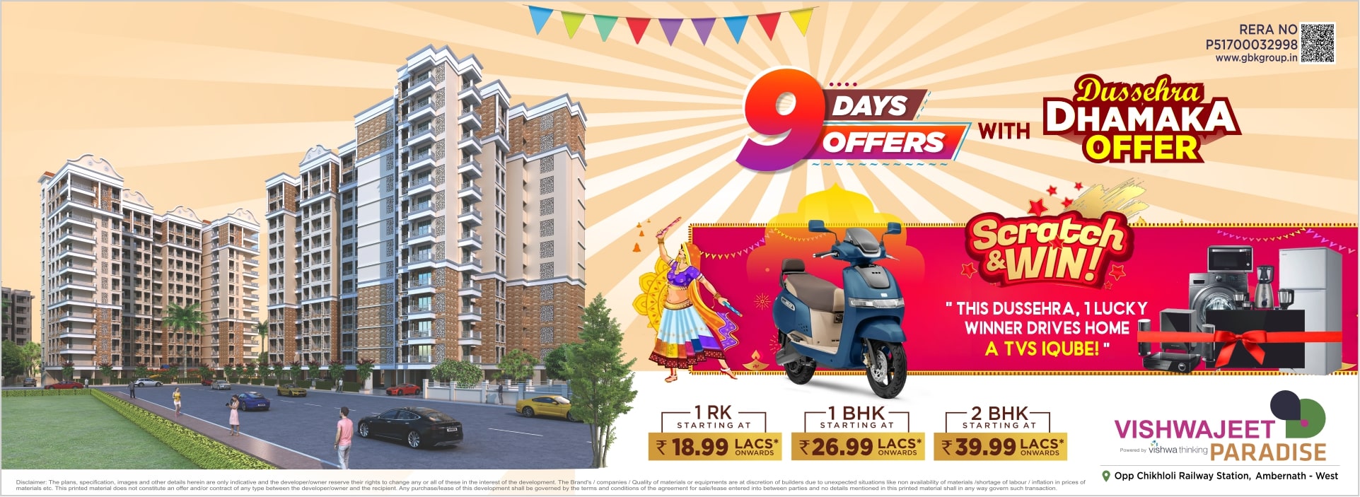 Yes, Vishwajeet Paradise is offering flats for sale in Ambernath, and it is near the railway station. Though the project is located in Ambernath, the nearest station to this project is Chikhloli Railway Station.