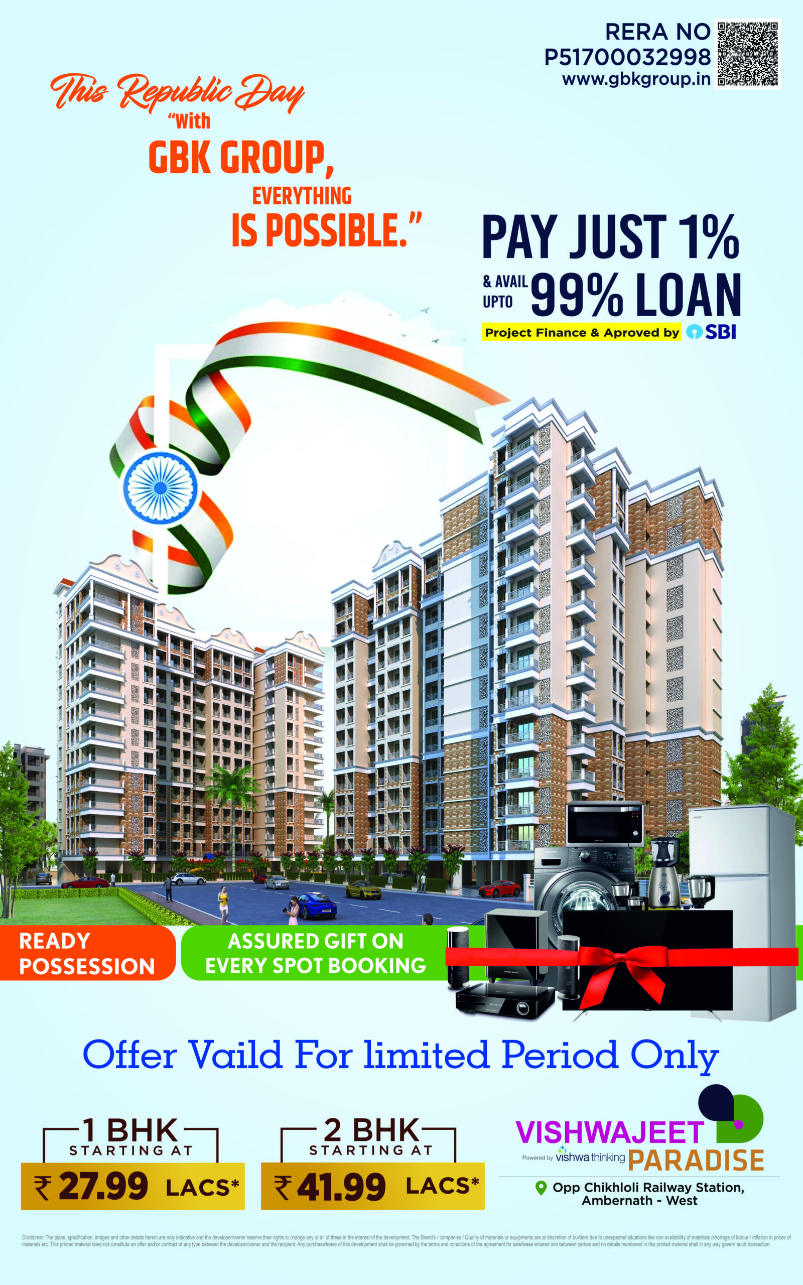 Yes, Vishwajeet Paradise is offering flats for sale in Ambernath, and it is near the railway station. Though the project is located in Ambernath, the nearest station to this project is Chikhloli Railway Station.